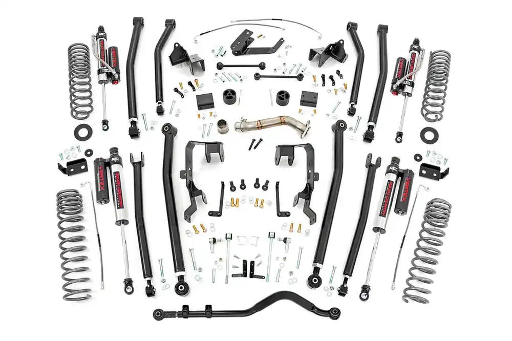 Achieve the ultimate flex and articulation while retaining a smooth highway ride quality with Rough Country’s 4in Long Arm Suspension Lift Kit. This true 4-link setup offers incredible off-road performance while keeping the suspension geometry as close to the factory angles as possible.