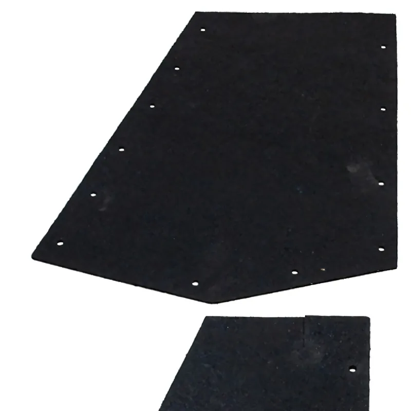 Splash shields are commonly made from rubber, molded plastic, fiberglass, or coated steel depending on the original factory design.