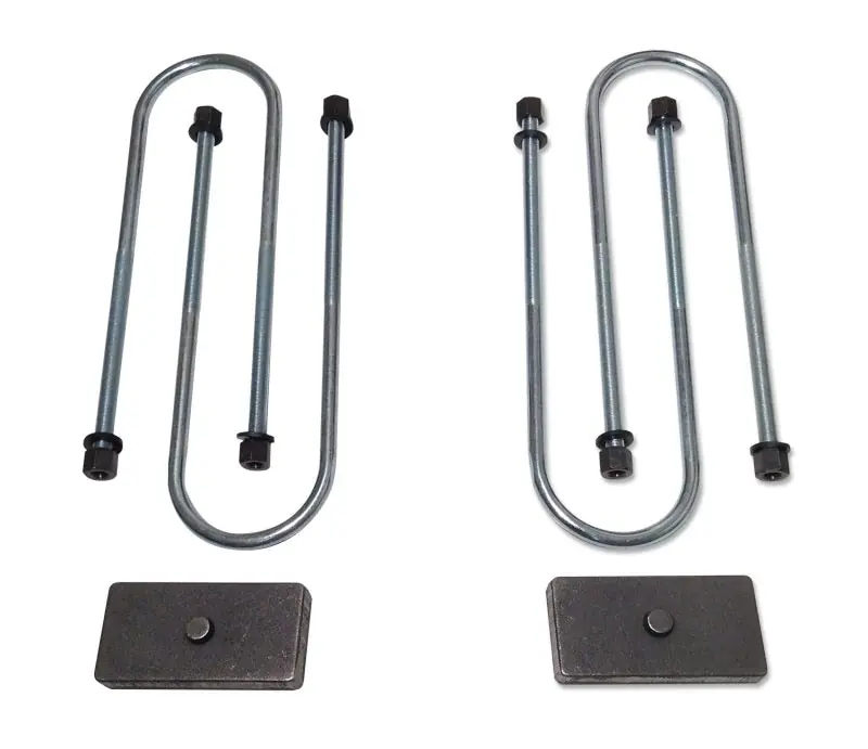 Tuff Country’s block and u-bolts kits are an economical solution to raising the rear end of many trucks and SUVs. Lift blocks are inserted between the factory axle and leaf spring to lift the rear end. Each kit includes lift blocks and extended zinc plated u-bolts, custom fit for the application.