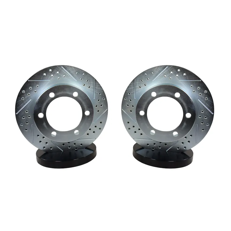 Baer Claw performance rotors are a great way to improve your vehicles braking performance and overall appearance. The kit includes a pair of direct replacement rotors with a cross-drilled and slotted friction surface that allows an escape route for the gasses and dust that form between the pad and rotor during braking providing a more consistent pedal feel and reduced brake fade. Each pair of rotors are zinc-plated providing a brilliant finish behind open center wheels.