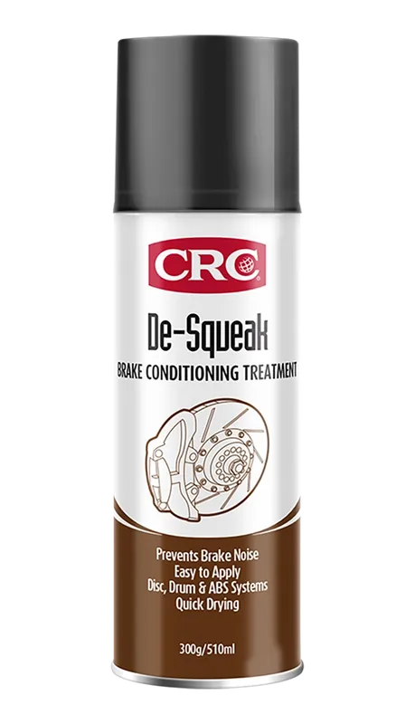 CRC De-Squeak Brake Conditioning Treatment prevents brake noises before they occur. This uniquely formulated product contains aluminium and graphite to plate and protect metal surfaces up to temperatures of 1800°F. CRC De-Squeak has a smooth texture, fine particle sizing and dries quickly.