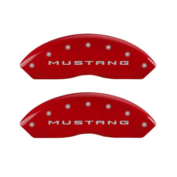 Best Price MGP 4 Caliper Covers Engraved Front 2015/Mustang Engraved Rear 2015/Bar & Pony Red finish silver ch