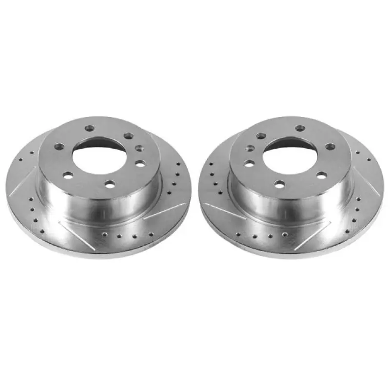 Power Stop drilled and slotted rotors provide a bolt-on upgrade for improved brake cooling and performance. Precision cross-drilled for maximum cooling and maximum performance during extreme conditions; rounded slots sweep away gasses, dust, and moisture to keep a clean friction contact patch on the rotor surface. Silver zinc dichromate plating resists rust and corrosion. With a direct OE fit, there are no special modifications needed.