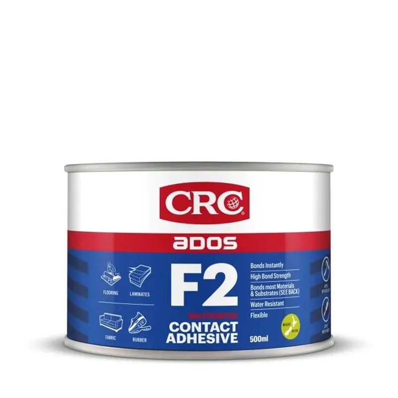 CRC F2 is a high-performance general-purpose contact adhesive. It is water resistant and flexible and its high bond strength makes it ideal for a wide range of uses.