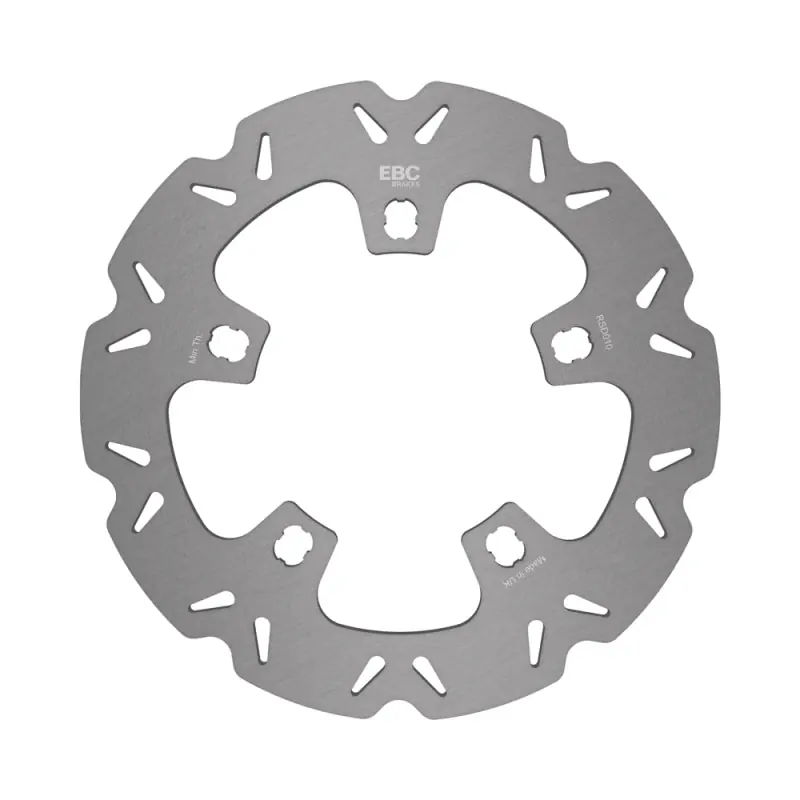 EBC Brakes™ Vee-Rotors™ Replacement Discs are British made discs using German mill rolled precision stainless steel rotor blades with a VEE profile weight reducing profile mounted onto lightweight alloy center hubs, using the patented SD square drive button technology.