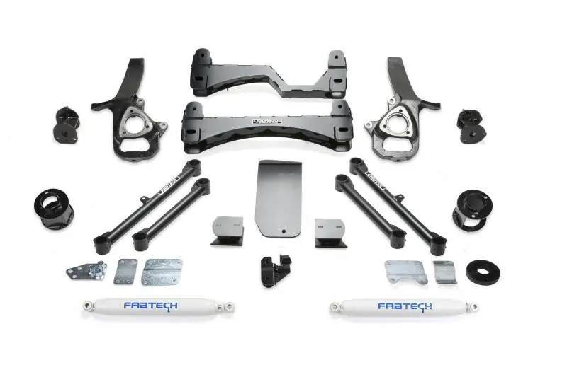 This system is a great choice for Ram owners looking to keep that stock ride yet want big tires and wheels. The factory suspension is relocated with heavy duty bolt on bracketry that will provide years of trouble free service. The system features Fabtechs proven IFS technology with extended length ductile iron steering knuckles for proper factory electronic stability control functionality. Heavy duty 1/4 thick steel lower control arm crossmembers provide superior ground clearance while the integrated front differential skid plate adds protection to the drivetrain. Rear lift is accomplished with steel coil spring spacers that utilize the factory coil springs for stock load carrying capacity with a great highway ride. The Basic System includes front coilover spacers that utilize the factory Coilover shocks for a stock like ride characteristic. Rear shock options include Performance twin tube or Stealth monotube shocks.