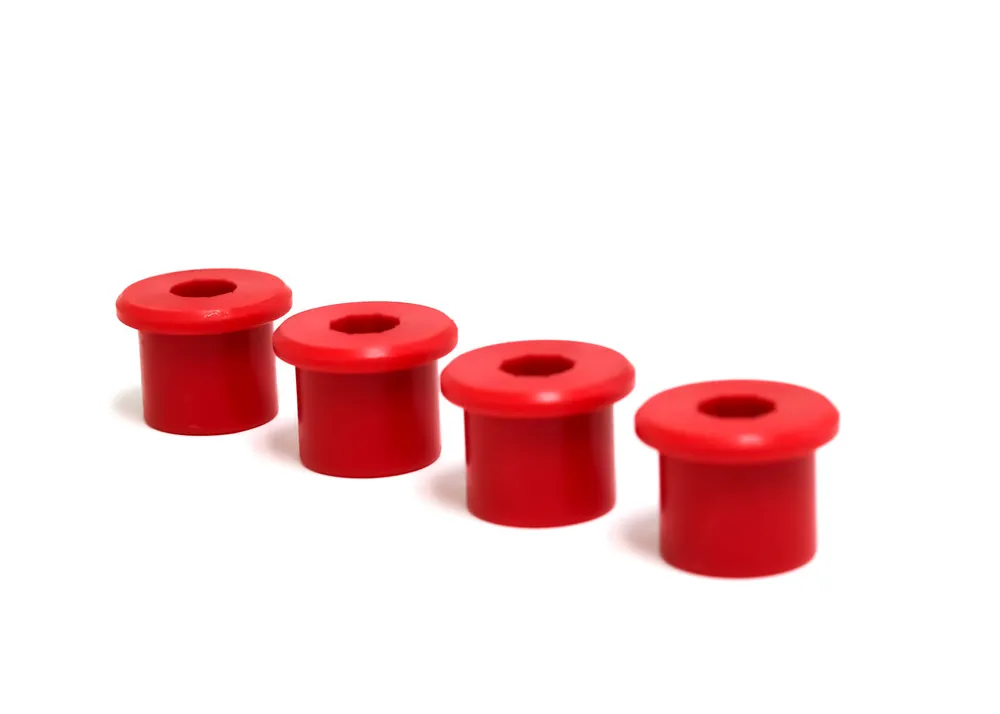 This kit comes with four replacement bushings to fit in two engine mounts. These bushings are the 1.5 inch barrel style which are red in color. AWR’s replacement Energy Suspension polyurethane bushings are for AWR’s fabricated motor mounts. Motor mount bushings are available in three durometer specifications. 2 bushings are required per motor mount, this specific kit provides four replacement bushings to complete replacements on 2 mounts.70 durometer is recommended for daily driving with little to no mods. 70 – 88 durometer is recommended for lightly to intermediate modification levels. 88 – 95 durometer is recommended for highly modified street and track builds.70 durometer (soft) 88 durometer (medium) 95 durometer (hard)Please specify which mounts these bushings are. Some may need a slight trim and we would prefer to do that service here at no charge! Have any questions? Email [email protected] or use our live chat located on our website! Fixed shipping applies to orders within the United States.How to swap bushings: 1. This process is best performed in a bench vise. Drive the center steel sleeve out with a punch and rubber mallet.2. Insert flat blade screwdriver into urethane bushing and line up where the two bushings meet in the middle. Drive out one side of the bushing. Once one side is complete, drive out the remaining side.3. Insert new bushings by hand as far as they will go. Pinch in vise to set against the barrel. Insert opposite side and repeat.4. Insert metal sleeveand pinch in vise or use a rubber mallet to seat. Do not hit the sleeve with a steel hammer!
