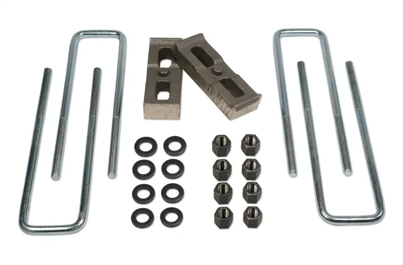 Tuff Country’s block and u-bolts kits are an economical solution to raising the rear end of many trucks and SUVs. Lift blocks are inserted between the factory axle and leaf spring to lift the rear end. Each kit includes lift blocks and extended zinc plated u-bolts, custom fit for the application.