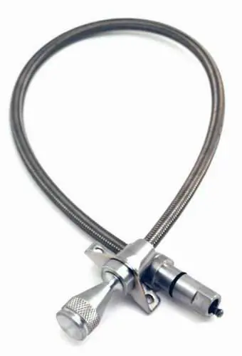 Gennie Shifter® offers 2 options; one that mounts on the transmission & one that mounts to the firewall. Both consist of anodized aluminum fittings, stainless steel braided housing with a cable type dipstick (no plastic) that allows for flexibility.