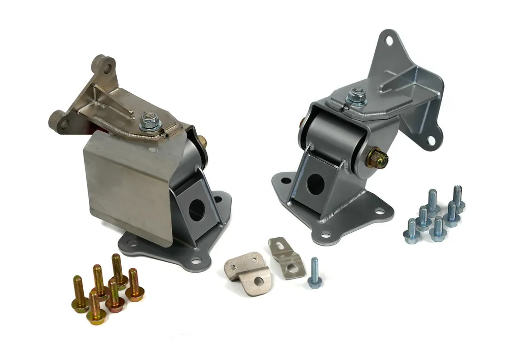 Complete engine mount and upper bracket kit for a Mazda Miata ND MX5 by AWR Racing.AWR MX-5 mounts are a must have for every enthusiast. There is no substitute for the quality, design, and benefits these mounts transfer to your vehicle. AWR’s engine mount kit is a direct bolt on replacement for your MX5 ND chassis. Fabricated steel replacement motor mounts provided with Energy Suspension polyurethane bushings that mount in the factory location giving more secure engine support. These mounts improve shifting and completely change the feel of the car keeping power sent to the wheels as it should be. Want less engine movement, cleaner shifts, as well as many more benefits? Look no further – AWR Racing has you covered! AWR offers the best valued mounts that suit driver needs. We have durometer options for daily, aggressive, and track driven builds. Street and track proven since 1995. This kit is also provided with both passenger and drivers side upper brackets. AWR Racing’s MX5 ND upper brackets are specifically built to allow the use of an aftermarket exhaust header as well as an OEM header in any model ND MX5. The passenger side upper bracket is nickel plated for a more durable finish around the heat of the exhaust, this kit is also supplied with a heat shield that attaches to the passenger side mount and bracket. The drivers side bracket is powder coated. These ND upper brackets are made in the USA, laser cut, CNC folded, and tig welded. These mounts help stop drive train lash (rocking) when transitioning from on and off the throttle. Help keep that engine stable inside the engine compartment, putting the power to the ground instead of rocking the engine and missing shifts. Provides a more direct throttle response and more precise gear selections. These engine mounts are both street and track proven. Application:2016+ Mazda MX-5 ND with an OEM exhaust header 2016+ Mazda MX-5 ND with an aftermarket exhaust header Items included: ND MX5 complete mount kit Heat ShieldMounting hardware and tabs What durometer is best for you? At AWR Racing, we have been making high performance Miata mounts since 1995. We have updated our Miata motor mounts to a larger bushing size which helps reduce NVH, specifically reduce cabin vibration. Alongside a bigger bushing design, we have launched our tested and proven 62 durometer Energy Suspension polyurethane option which is perfect for daily and street use. Are you looking for stability without much NVH transferred to your vehicle? 62 durometer is the perfect solution for you. 62 – 70 durometer is recommended for daily driving with little to no mods. 70 – 88 durometer is recommended for lightly to intermediate modification levels. 88 – 95 durometer is recommended for highly modified street and track builds. You can always opt for a different durometer if your first choice doesn’t suit you needs, all of our bushings can be swapped out or replaced! 62 durometer (ultra soft) 70 durometer (soft) 88 durometer (medium) 95 durometer (hard) Initial NVH (noise, vibration, harshness) will start to settle after about 500 miles driven.OEM brackets are very weak units and tend to break often on the ND MX-5’s, upgrade to AWR’s reinforced brackets and never worry about replacing one ever again! All of our steel fabricated units are provided with a lifetime warranty.All steel fabricated units are provided with a lifetime warranty.