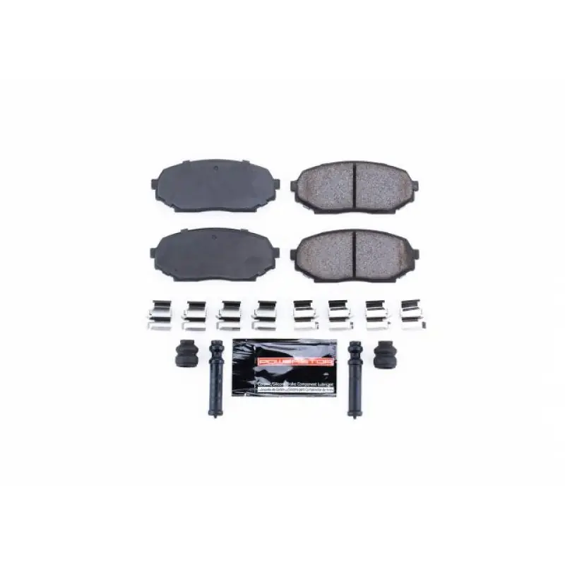The PowerStop Z23 Evolution Sport ceramic brake pads are designed as an upgrade over stock brakes to reduce brake dust & eliminate noise, so you can ride in comfort. These brake pads are made with a low-dust ceramic formula, infused with carbon-fiber for increased braking power without sacrificing everyday drivability. The necessary stainless-steel hardware along with ceramic brake lubricant is included with the Z23 brake pads making it easier to complete your brake job. Use Z23 Evolution Sport brake pads to give your daily-driver the stopping power it deserves.