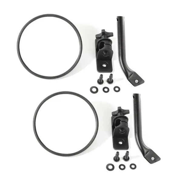 The new Rugged Ridge Stubby Quick Disconnect Mirrors give you the visibility you need for safe driving when you take the doors off your JK, but with a new ‘stubby’ arm; delivering a narrower, more off-road friendly profile. Each mirror arm is reduced by threeinches, allowing the mirror to hug more tightly to the vehicles body. Available with both round and rectangular mirror heads, Rugged Ridge Stubby Mirrors textured black powder coat looks great on any paint color and installs easily with the included mounting hardware. When it’s time to put the doors back on, these mirrors can be removed quickly with a few turns of the convenient thumb screw. A convenient bolt-on mirror solution for when you want to leave the doors at home – also great with tube or safari doors. Includes a pair of mirror heads, mirror arms, mounting brackets, bushings, thumbscrews, gaskets and hardware.
