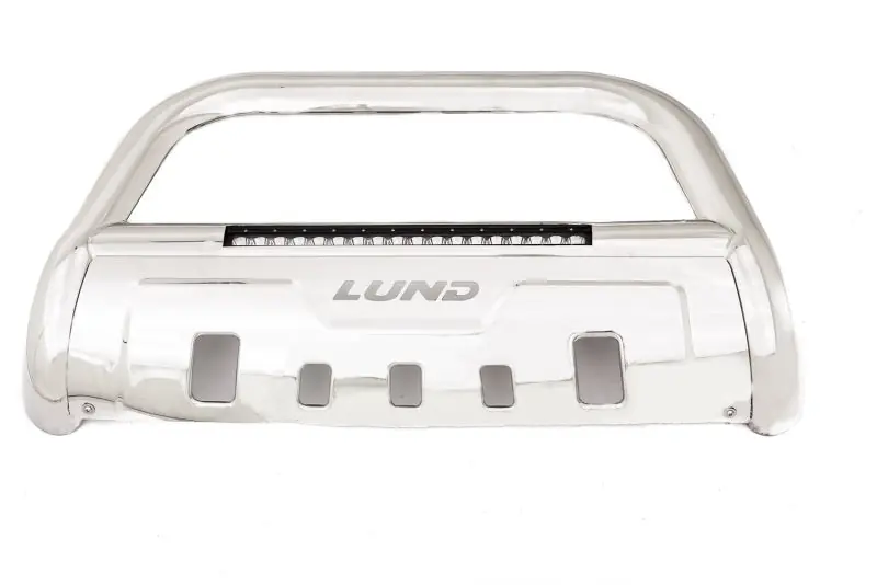 Protects your front end from flying debris with 3.5inches of oval steel tubing. These bull bars also boost your visibility with an integrated 20in. LED light bar. The included heavy duty light bar illuminates your night driving with a bright flood beam pattern and is easily wired into your factory light wiring, or a wiring harness can be purchased separately. Available in black textured powder coat or polished T304 stainless steel finish. Our popular LUND bull bars may now be ordered with a wire harness kit.The wire harness kit is also sold separately for lighting and accessories up to 30 Amps.LUND’s bull bars with LED light bar and wiring kit is the total package to see and be seen, providing complete front end style, lighting and protection.