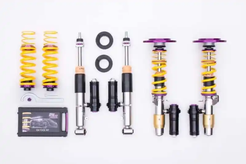 Designed to maximize the performance on vehicles with DOT-R and other ultra high-performance tire setups. KW V3 Clubsport coiloversare the ideal choice for double-duty street cars, use at HPDE’s(high performance drivers education), time attack or time trials, and club level racing. The Clubsport setup was specially designed on the Nordschleife and the continuous adjustable ride height allows for fine corner weight or making setup changes. The TVR-A and TVC-A valve technology -provide an unmatched level of separately adjustable damping for the rebound and compression enabling a customized set up appropriate for the vehicle’s modifications such as weight, tire characteristics, and other various conditions. The KW V3 Clubsport INOX-LINE coilover kit is the ideal tool for performance-oriented drivers and experienced tuning enthusiasts who place a strong emphasis on the overall performance of their suspension. The KW V3 Clubsport features patented TVR-A and TVC-A technology -hat provides separately adjustable rebound and compression damping. The extensive Adjustment -angle of the independently configurable rebound and compression make it easy to directly influence the steering behavior, directional stability, grip and handling characteristics for confident and repeatable results at the limit of driving dynamics.This Part Fits: Year Make Model Submodel 2015-2018 BMW M3 Base 2015-2020 BMW M4 Base 2019-2020 BMW M4 CS 2016 BMW M4 GTS