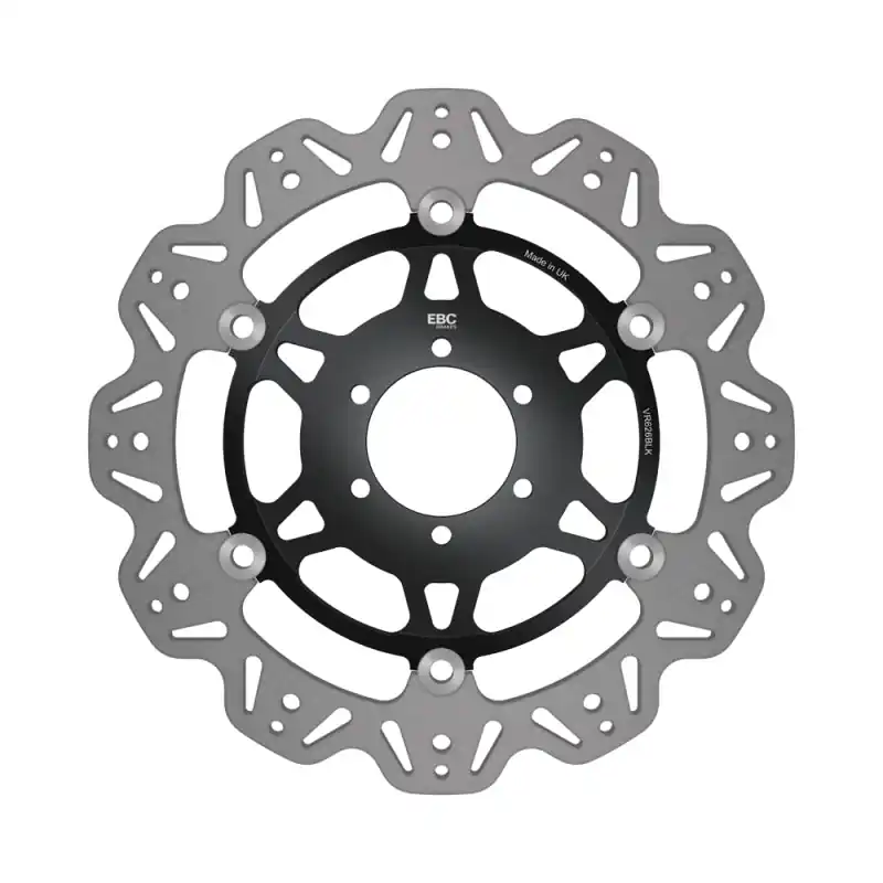 EBC Brakes™ Vee-Rotors™ Replacement Discs are British made discs using German mill rolled precision stainless steel rotor blades with a VEE profile weight reducing profile mounted onto lightweight alloy center hubs, using the patented SD square drive button technology.