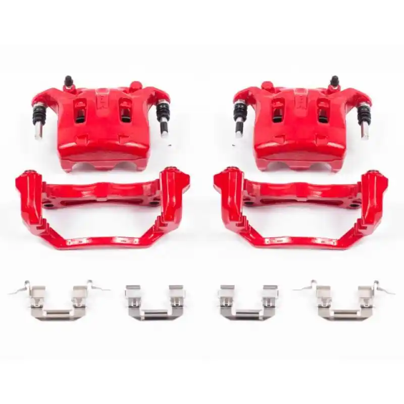 PowerStop Powder Coated Brake Calipers are made specifically with the enthusiast in mind. These calipers (sold as pairs) bolt directly in place of the original stock calipers and look great behind any set ofwheels. PowerStop Brake Calipers are engineered to provide the best performance and reliability, and are coated with a durable electrostatic high-temperature red powder coat. The easy-to-clean coating provides resistance to rust and corrosion thus extending the life of your calipers. PowerStop calipers are 100% pressure tested and inspected to verify piston operation to guarantee a reliable, high quality brake performance. Expertly assembled with everything needed for a brake upgrade using new seals, caliper slide pins/bolts, dust boots, bleeder screws, and stainless-steel pad attachment hardware. High temperature EPDM rubber dust boots and premium lubricants ensure a smooth caliper operation and durability in the harshest conditions. PowerStop Powder Coated Brake Calipers are finished in a high-temp powder coating and designed to enhance both the performance and custom look of your vehicle!