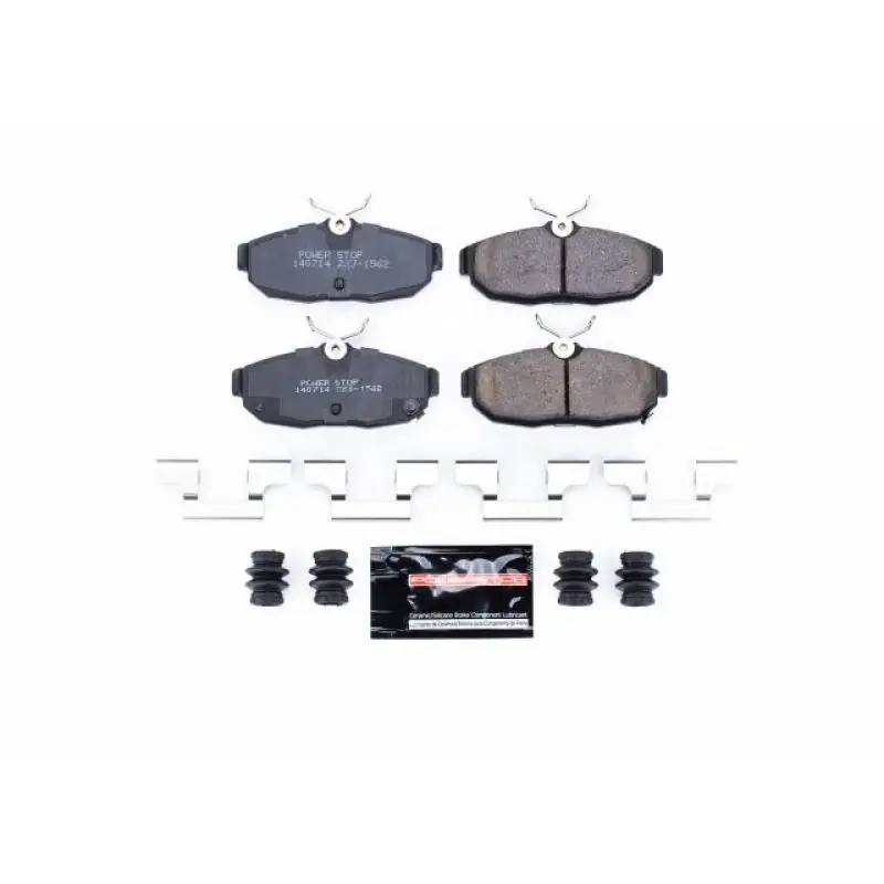 The PowerStop Z23 Evolution Sport ceramic brake pads are designed as an upgrade over stock brakes to reduce brake dust & eliminate noise, so you can ride in comfort. These brake pads are made with a low-dust ceramic formula, infused with carbon-fiber for increased braking power without sacrificing everyday drivability. The necessary stainless-steel hardware along with ceramic brake lubricant is included with the Z23 brake pads making it easier to complete your brake job. Use Z23 Evolution Sport brake pads to give your daily-driver the stopping power it deserves.