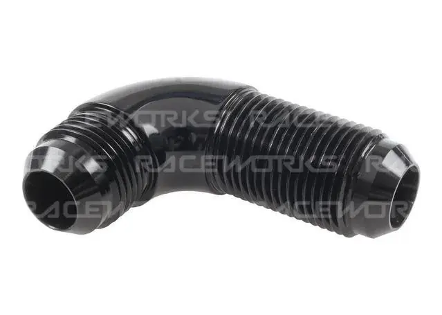 Raceworks Teflon Hose Fitting An-8 90 DegRaceworks Hose and Fittings are designed to withstand the most extreme performance applications, while looking simple and professional in any engine bay. All Raceworks 100, 200 and 400 series hose is compatible with E85, methanol, automotive oils, and coolants. Exact specifications and burst pressures are listed under each series. All Raceworks fittings and adapters are full flow, hardcoat anodised, and machined from high grade 6061 T6 billet aluminium.