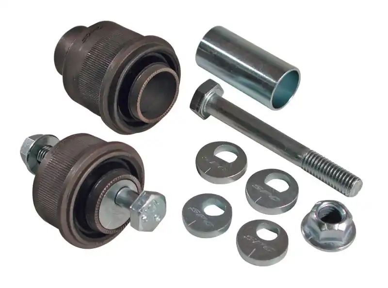 These rear control arm bushings provide an additional +/- 1.25deg of camber and toe adjustment for the rear of the BMW 5 series. Replace the inboard bushings on the rear upper control arms with these innovative adjustable bushings for lifetime adjustability. Use standard bushing press sleeves and bushing press tool 72509 to remove the old bushings and press in the new ones. California Residents WARNINGThis Part Fits: Year Make Model Submodel 2001-2003 BMW 525i Base 1997-2000 BMW 528i Base 2001-2004 BMW 530i Base 1997-2003 BMW 540i Base 2004 BMW 545i Base 2004-2005 BMW 645Ci Base 2006-2010 BMW 650i Base 2002-2005 BMW 745i Base 2002-2005 BMW 745Li Base 2006-2010 BMW 750i Base 2006-2010 BMW 750Li Base 2004-2006 BMW 760i Base 2003-2008,2010 BMW 760Li Base 2007-2008 BMW Alpina B7 Base 2000-2003 BMW M5 Base 2006-2010 BMW M6 Base