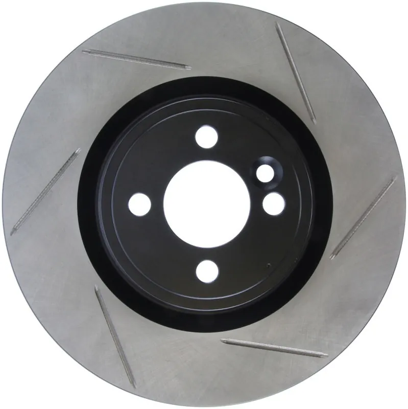 StopTech Slotted Sport Rotors are 1-piece direct replacement brake discs for factory brake systems and stock calipers that look great behind your wheels – and offer significantly improved braking performance. The unique slotting aids with heat and brake dust dispersal; prevents glazing of the pads; adds bite and improves wet and dry braking performance. Built to last; the black e-coating provides protection from corrosion and the high carbon metallurgy (in most applications) offers quieter operation; better crack resistance and increased performance.