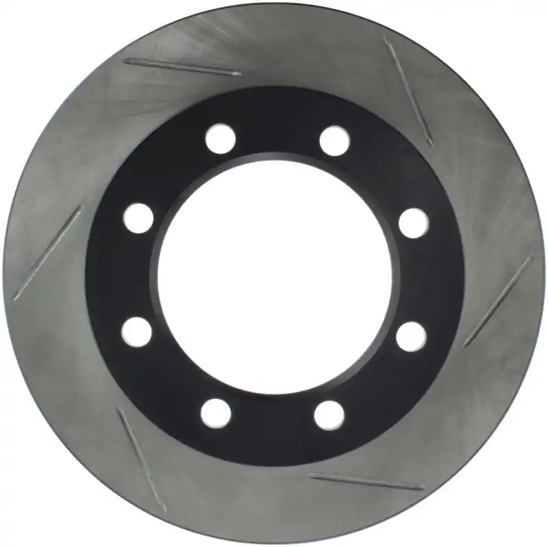 StopTech Slotted Sport Rotors are 1-piece direct replacement brake discs for factory brake systems and stock calipers that look great behind your wheels – and offer significantly improved braking performance. The unique slotting aids with heat and brake dust dispersal; prevents glazing of the pads; adds bite and improves wet and dry braking performance. Built to last; the black e-coating provides protection from corrosion and the high carbon metallurgy (in most applications) offers quieter operation; better crack resistance and increased performance.