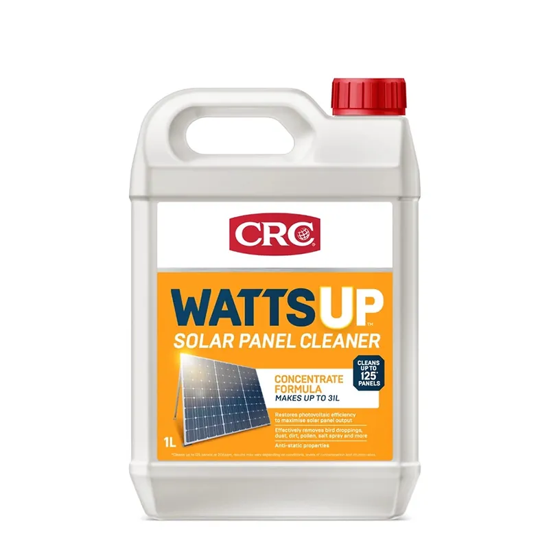 CRC WattsUp Solar Panel Cleaner effectively removes contaminants from solar panels. maximising power generation. It is formulated to remove pollen, pollution, bird droppings, dust, dirt, salt spray and more, leaving a spot free finish.