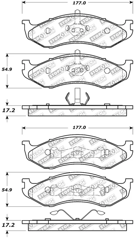 StopTech Street Select Brake Pads provide superior stopping power and reliability for passenger cars and light trucks. StopTech engineers have developed two application specific friction compounds; semi-metallic and ceramic that combine improved stopping performance while reducing noise and dust. StopTech Street Select Brake Pads are installation ready with High Performance shims attached to eliminate noise and vibration. OE style gas slots and chamfers optimize braking performance especially in repeat stop situations. Application specific hardware is included with each pad set ensuring full restoration of system performance and extended service life.