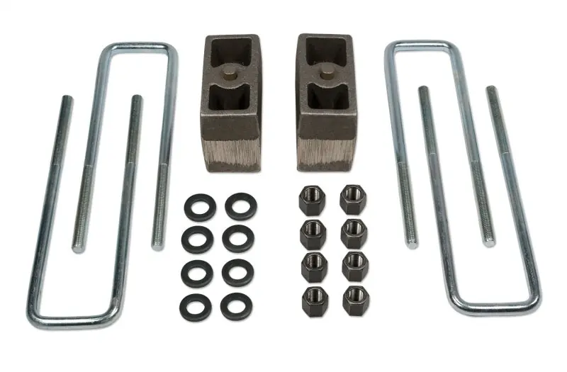 Tuff Country’s block and u-bolts kits are an economical solution to raising the rear end of many trucks and SUVs. Lift blocks are inserted between the factory axle and leaf spring to lift the rear end. Each kit includes lift blocks and extended zinc plated u-bolts, custom fit for the application.