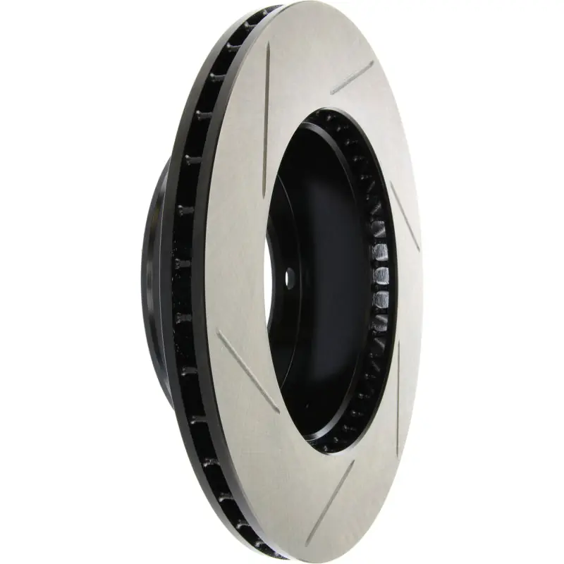 StopTech Slotted Sport Rotors are 1-piece direct replacement brake discs for factory brake systems and stock calipers that look great behind your wheels – and offer significantly improved braking performance. The unique slotting aids with heat and brake dust dispersal; prevents glazing of the pads; adds bite and improves wet and dry braking performance. Built to last; the black e-coating provides protection from corrosion and the high carbon metallurgy (in most applications) offers quieter operation; better crack resistance and increased performance.