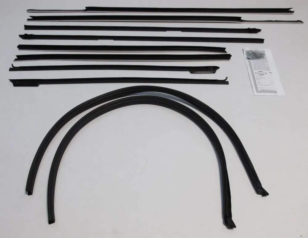 A window sweep kit is a set of replacement seals for classic car doors and windows. These sweeps help keep out water, dust, and wind while allowing the window glass to move smoothly. Replacing worn sweeps restores proper sealing, reduces interior noise, and protects door panels from moisture damage.