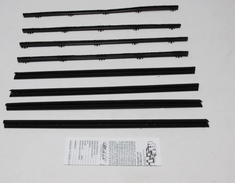 Kits vary by application and may include inner and outer window sweeps, outer sweeps only, or driver- or passenger-side components. Please review the product description carefully to confirm exactly which pieces are included for your specific vehicle.